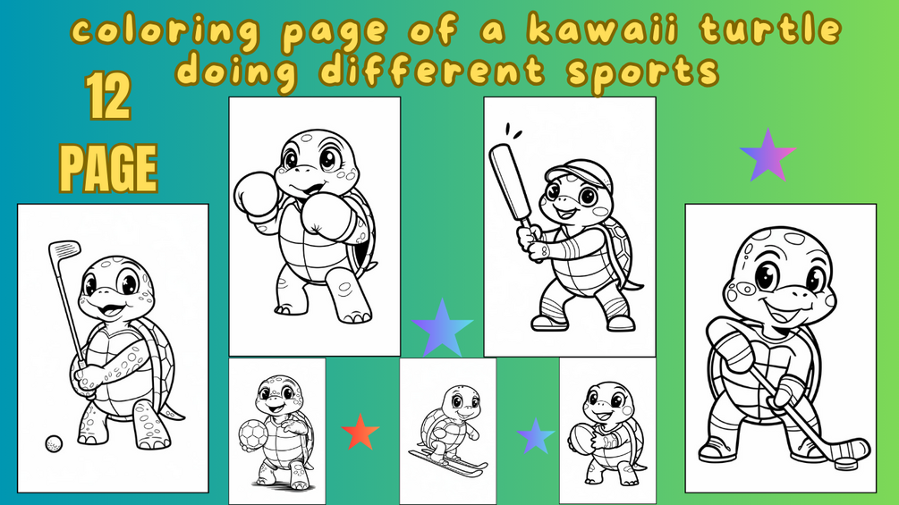 You will get 12 pages in PDF format coloring page of a kawaii turtle doing different s
